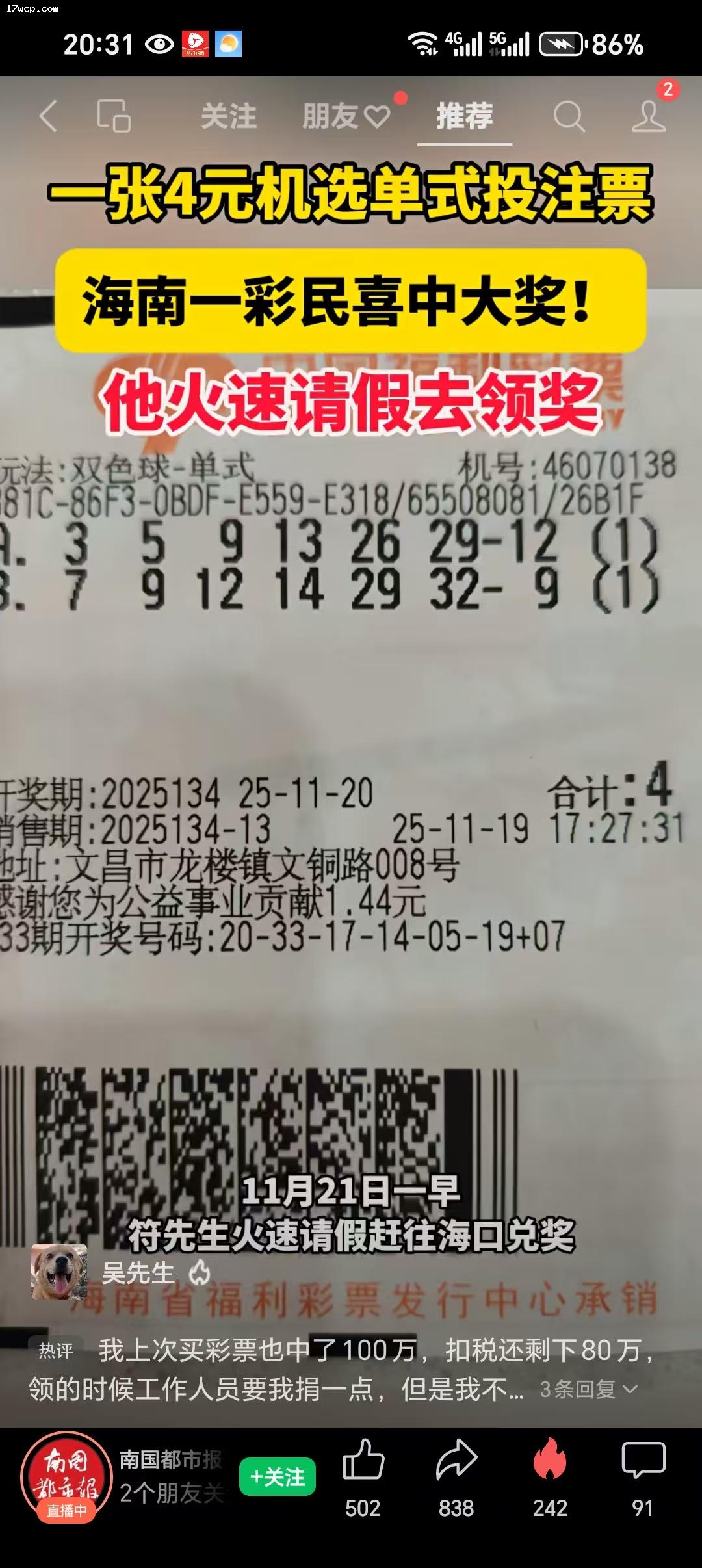 11月13日,中国福利彩票双色球第2025131期开奖,当期全国共中出一等奖8注,其中1注一等奖花落梅州市平远县44070320福彩销售站点,中奖彩票是一张10元5注单式票,同时中得双色球一等奖和二等奖,中奖总奖金高达812万元。这是梅州市今年中出的第八个500万元以上的福彩大奖。